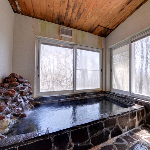 自然石を使用した浴場。温かい湯船に浸かり癒しのひと時をお過ごし下さい。